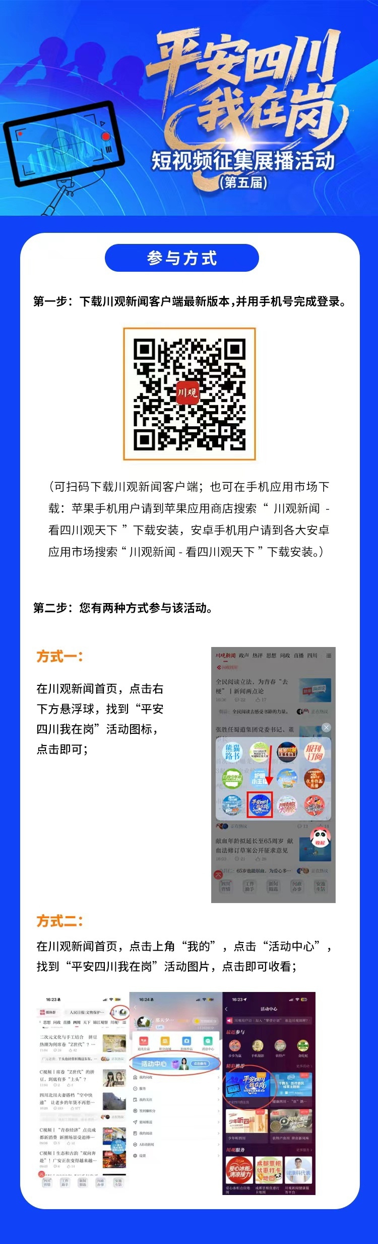 第五届“平安四川我在岗”短视频征集展播活动正火热进行中,诚邀您观看并为喜爱的作品点亮守护星,一起感受这份“政法温度”。此外,邀请您在川观新闻客户端“平安四川我在岗”系列稿件正文下方,结合亲身经历,送上祝福和致敬话语。活动结束后,我们将选取优质留言送出相关纪念品。