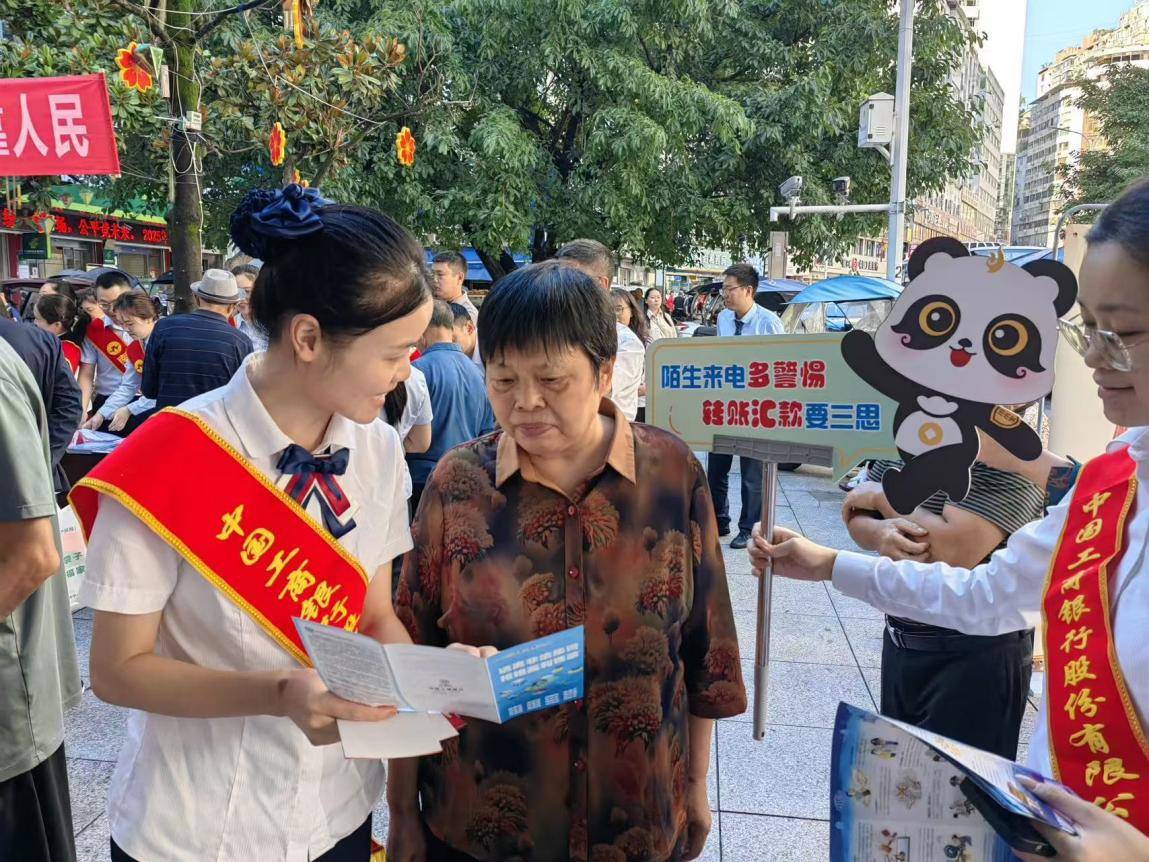 9月18日上午,该行在巴中市核心区域新天地广场设立主宣传点位,同步联动辖内支行在属地重点区域开设分站点,摆放宣传展架,悬挂宣传横幅,为现场群众分发宣传折页,迅速营造出浓厚的安全宣传氛围。
