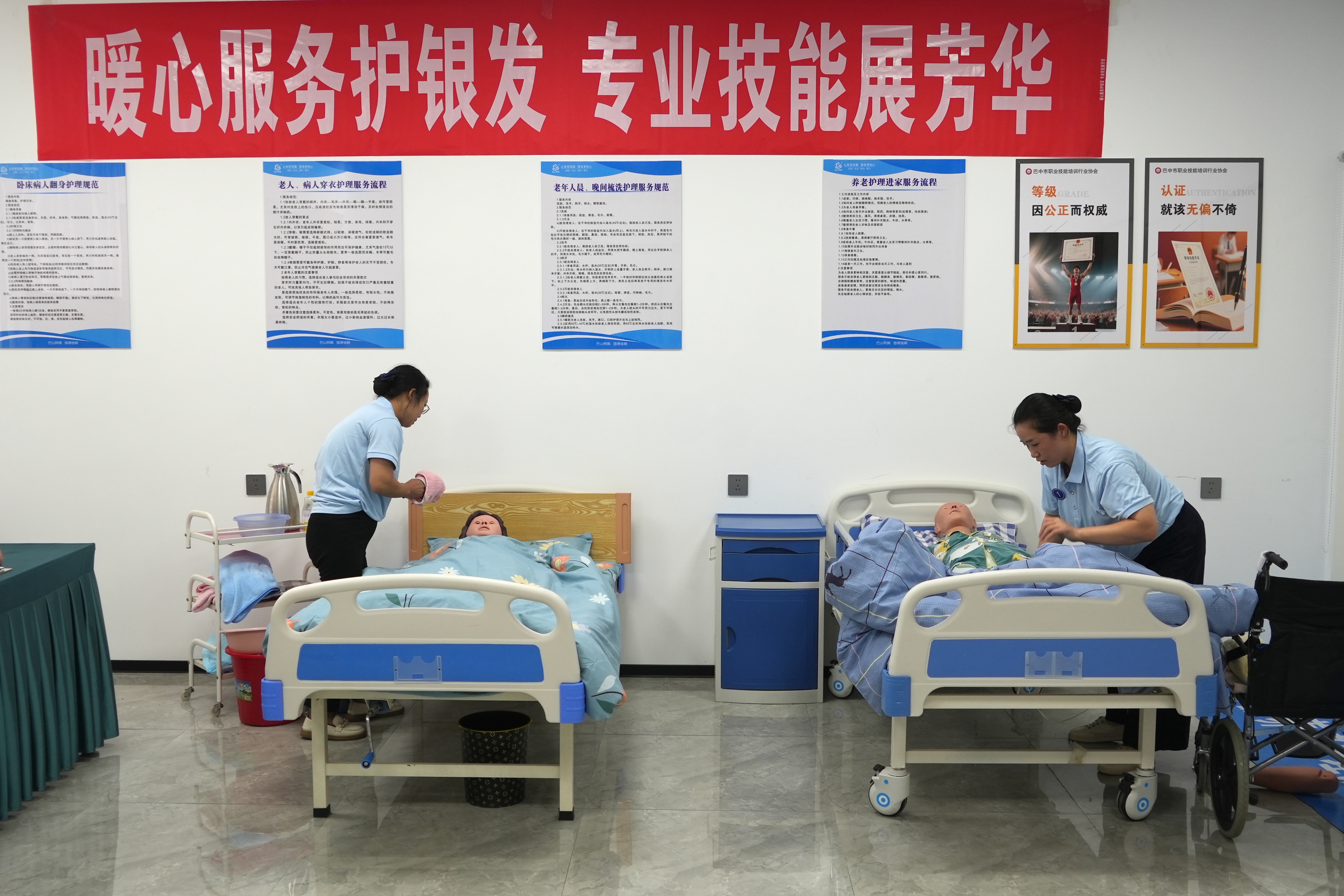 “这是我第一次参加这样的职业技能大赛,还是有一点紧张。”考试现场,已在巴中市通江县大椿养老康复中心工作5年的张玉蓉表示,参加此次赛事主要是想和同行交流,提升自己,后续更好地为老年群体服务。