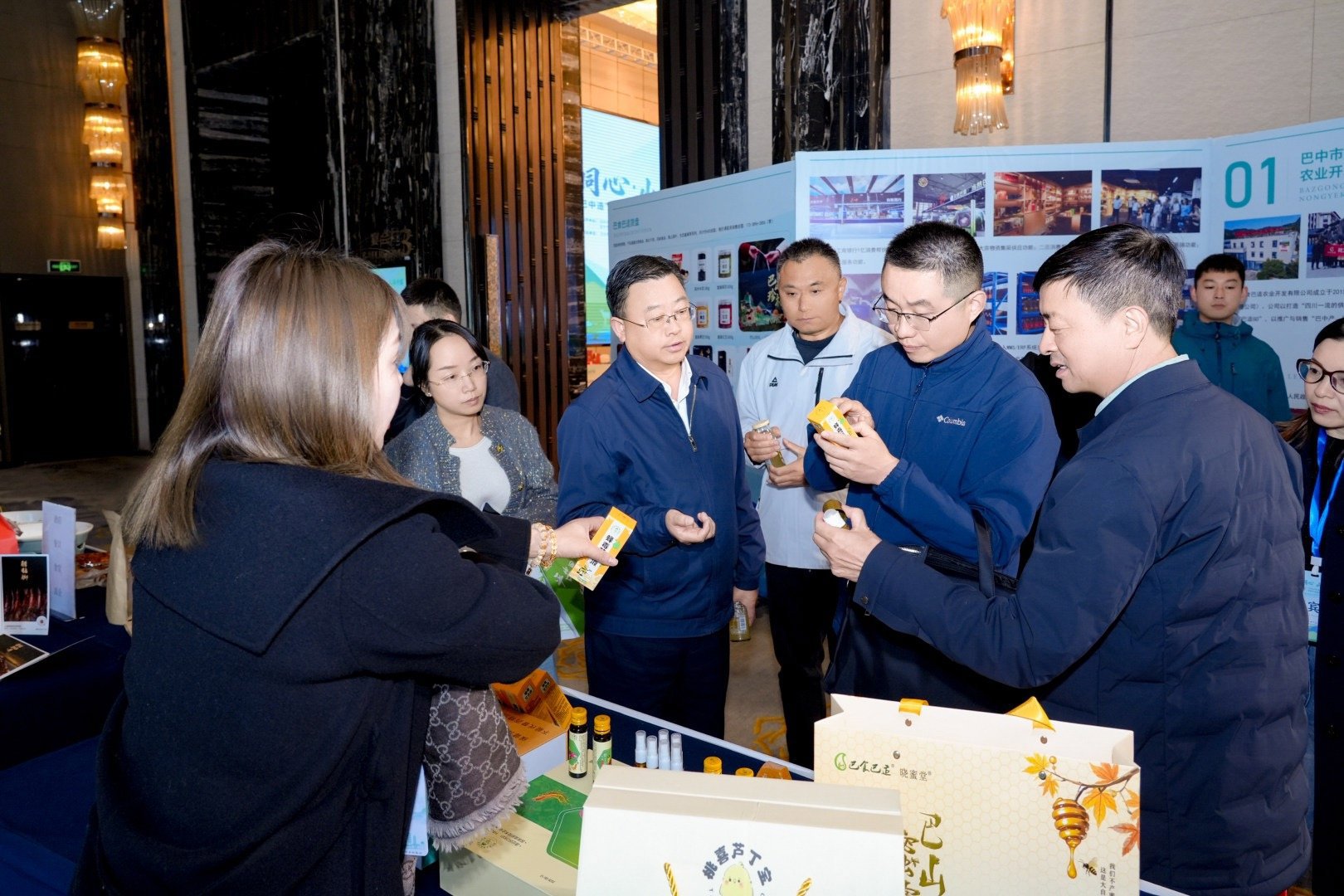 活动当天,两地市、县(区)商务、发改、供销等相关部门负责人及70余家企业代表齐聚一堂,共话合作、共谋发展。展销区里,两地25家企业带来100余种特色产品集中亮相,巴中生态畜禽产品、传统酿造食品等凭借优良品质深受参会人员青睐。