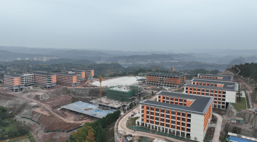 近日,走进巴中市巴州区教育园区项目建设现场,连片青山之间,一栋栋宽敞明亮的崭新教学楼拔地而起,橙白相间的外立面在阳光下格外醒目。食堂、标准化操场、多功能报告厅等配套设施建设正酣……这座占地249.68亩、备受巴中人期待的新校区,正以看得见的速度向竣工目标迈进。