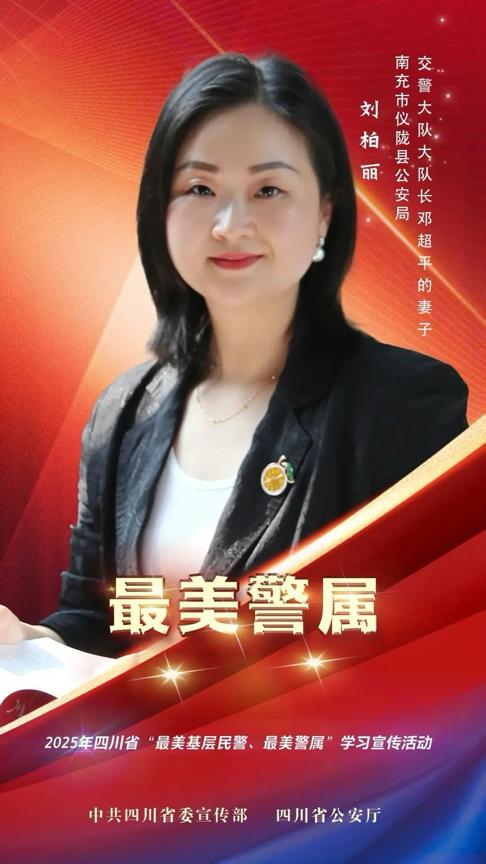 刘柏丽,女,39岁,汉族,四川张思德干部学院讲师,仪陇县公安局交警大队大队长邓超平的妻子,曾荣获南充市公安局“十佳警嫂”、仪陇县文明家庭、 张思德精神宣讲员等荣誉称号。