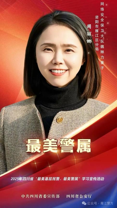 周丽娜,女,35岁,汉族,资阳市文化广播电视和旅游局人事培训科副科长、三级主任科员,资阳市公安局雁江分局网络安全保卫大队魏琳力的妻子,曾荣获“优秀共产党员”2次、“先进个人”等荣誉称号。