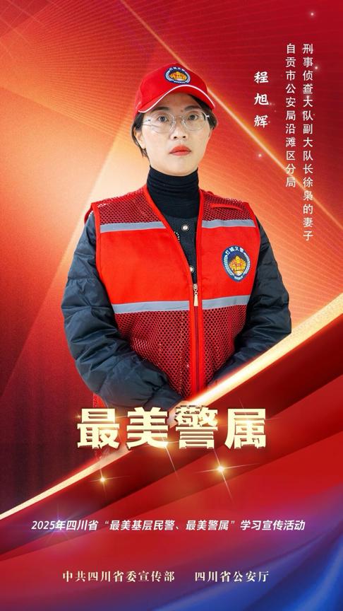 程旭辉,1991年10月出生,中共党员,现就职于中共自贡市沿滩区委政法委员会“多网合一”网格管理员派驻自贡市沿滩区卫坪街道。丈夫徐枭,自贡市公安局沿滩区分局刑事侦查大队副大队长。