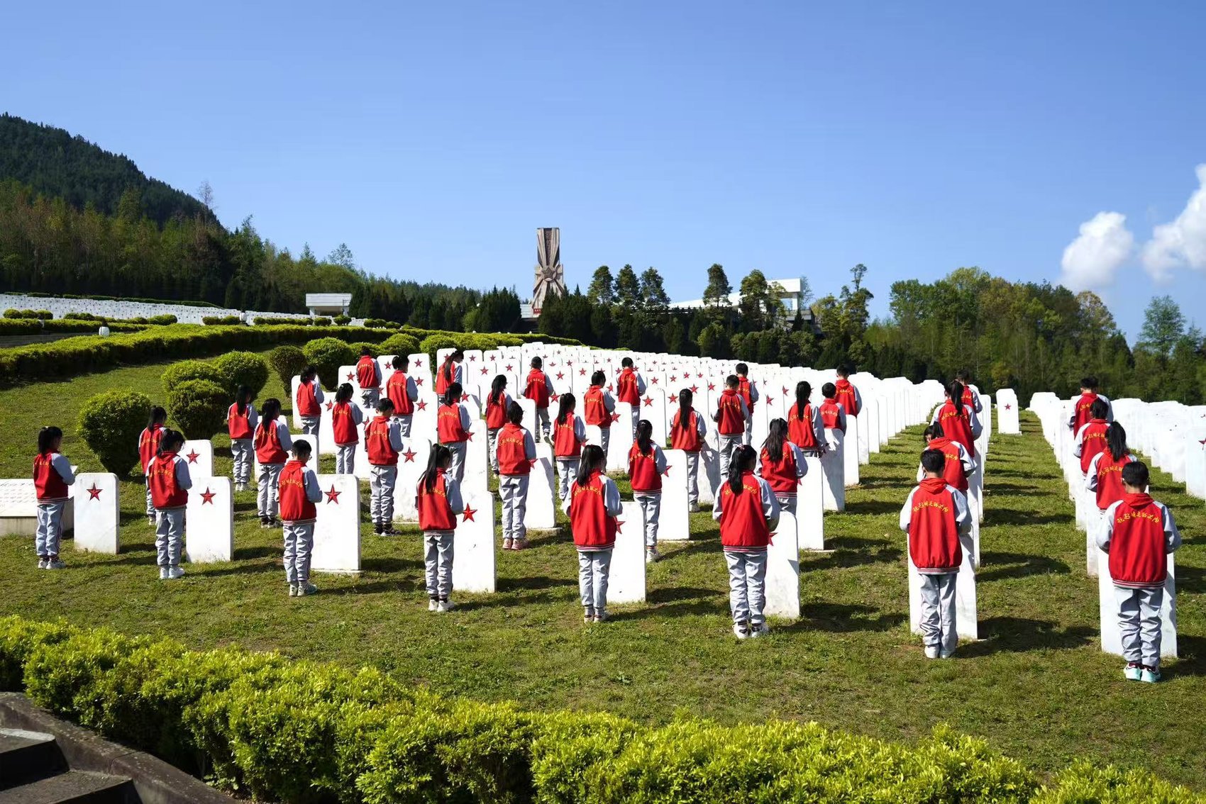 作为全国安葬红军烈士最多、规模最大的红军烈士陵园,川陕革命根据地红军烈士陵园里长眠着25048名红军烈士,其中无名烈士就有17225名。在无名烈士纪念园,面对墓碑上熠熠生辉的颗颗五角星,孩子们身姿挺拔、神情庄重,悄悄将心底涌动的敬仰与追思,化作一句句真挚的话语。