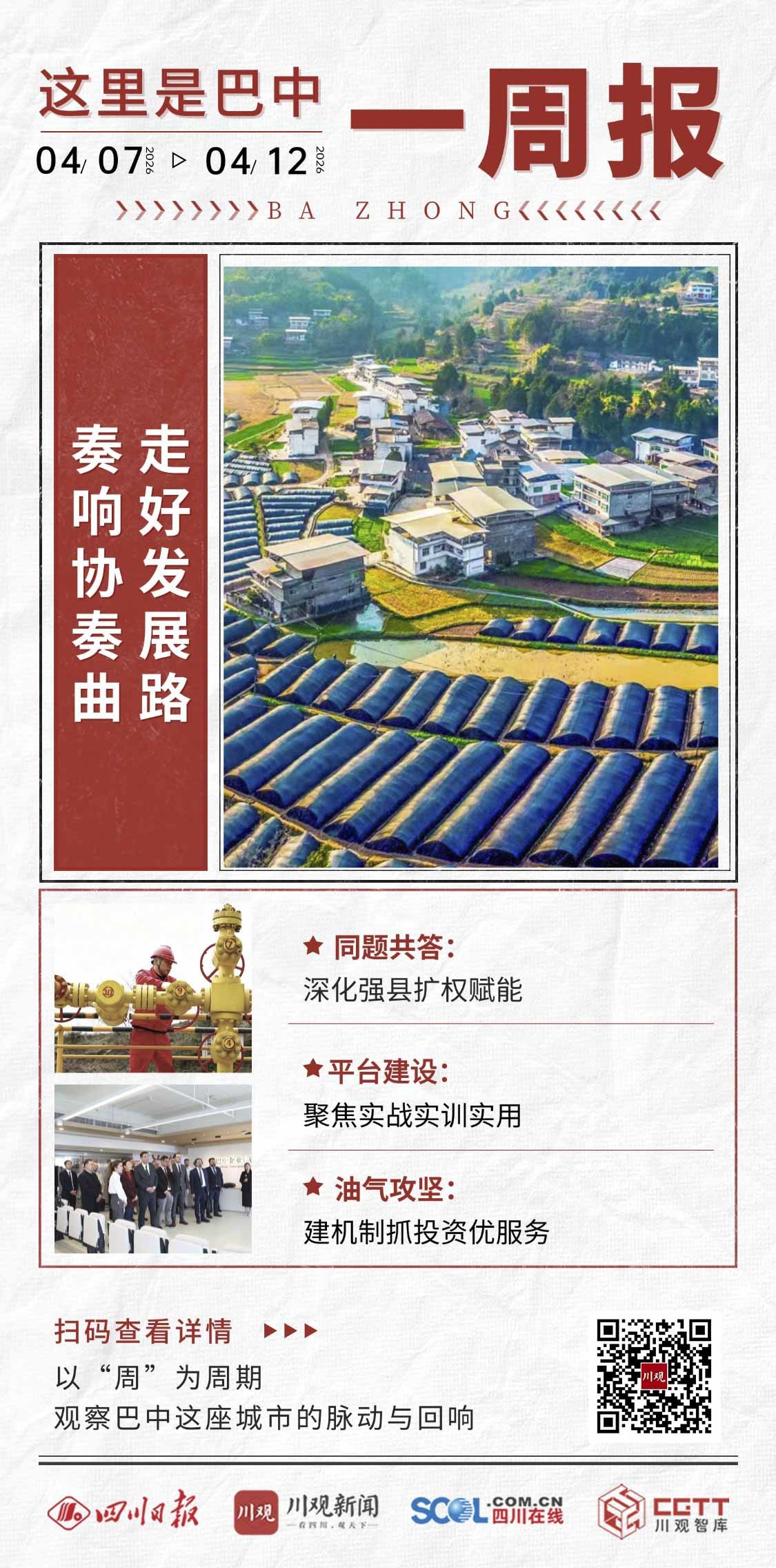 4月7日至12日,又一周过去,巴中围绕高质量发展这一中心任务,动作频频、蹄疾步稳,本周的一周报让我们从一场改革工作会议、一次平台建设调度会议、一次攻坚专题会议来看老区巴中如何加快前进步伐、如何奏响发展协奏曲。