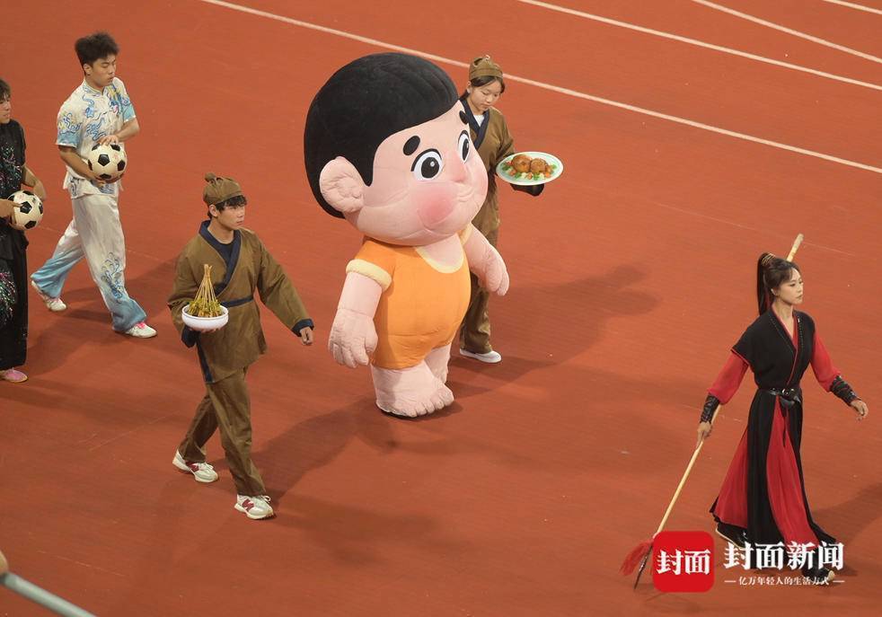 擦亮城市IP,不只是网上“玩梗”。9月20日晚,在本赛季“川超”开幕式上,自贡代表队化身“驯龙高手”,手牵恐龙上场;宜宾的“哪吒”们踩着独轮“风火轮”走来;乐山请来了“大佛姥爷”为大家鼓掌;绵阳让“李白”和机器狗跨界同框;泸州高举“奥运六金城”宣告自己在体育方面的实力;甘孜牵着牦牛、内江划着龙舟进场......在“四川人很‘神’”的评论背后,窥见的,是四川人对自己家乡文化的自信和热爱。