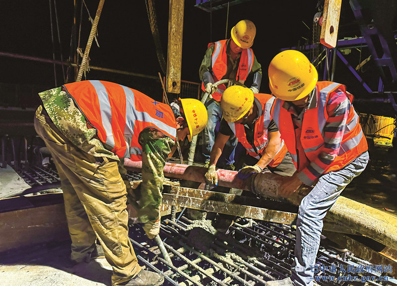 施工人员正在浇筑混凝土