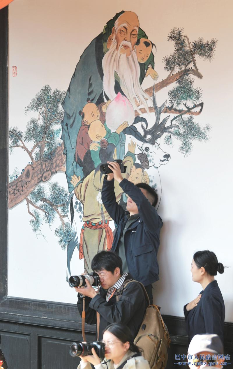 恩阳万寿宫,坐落于四川巴中恩阳古镇核心区,如今已从昔日的客家会馆蜕变为恩阳“戏窝子”文化名片的核心载体。4月12日,步入万寿宫,首先映入眼帘的是镶嵌在巨型木扇之上的“恩阳戏窝子”五个鎏金大字,瞬间将游客拉入到浓厚的戏曲氛围中。宫内张灯结彩,大红灯笼高挂檐角,吉祥福字点缀其间。台上,身着锦绣戏服的川剧演员们粉墨登场,精致的妆容勾勒出万千神采,水袖翻飞间尽显身段功底,唱腔婉转处更加动人心魄。台下,观众们目不转睛、沉醉其间,随着剧情起伏时而颔首称赞,时而拍手叫好,掌声与喝彩声此起彼伏,整个万寿宫内皆是欢声笑语。