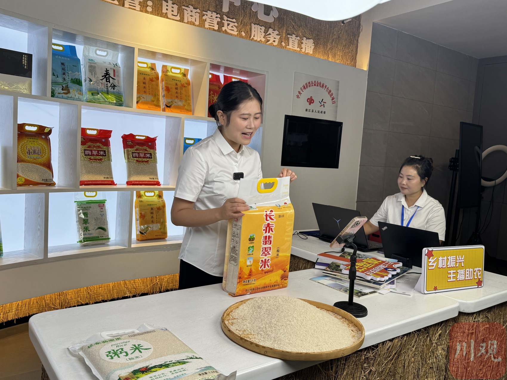 主播正在线上推荐长赤翡翠米。 李菲菲 摄
