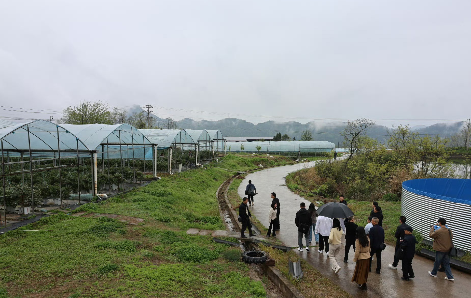 在平昌板庙镇蓝莓基地,标准化温室大棚一字排开,村民们正在大棚内有条不紊地开展施肥、管护等工作。雪白的蓝莓花挂满枝头,青绿的幼果点缀其间,一派生机勃勃。
