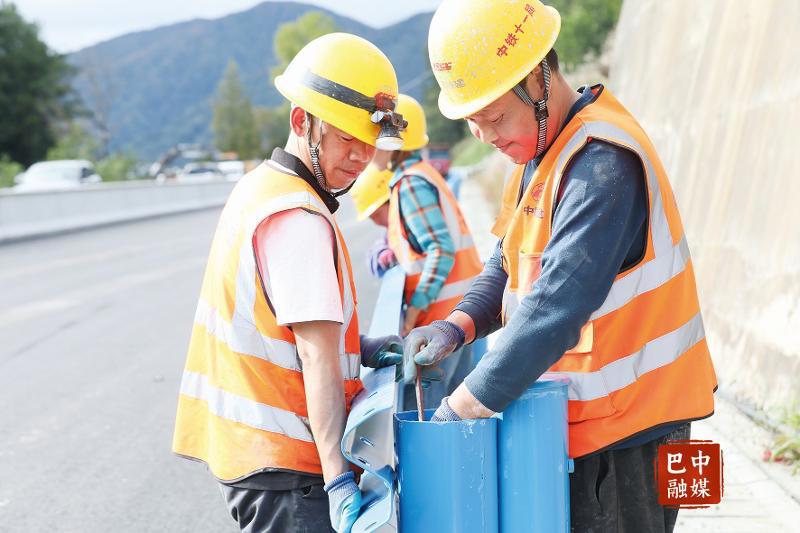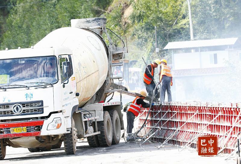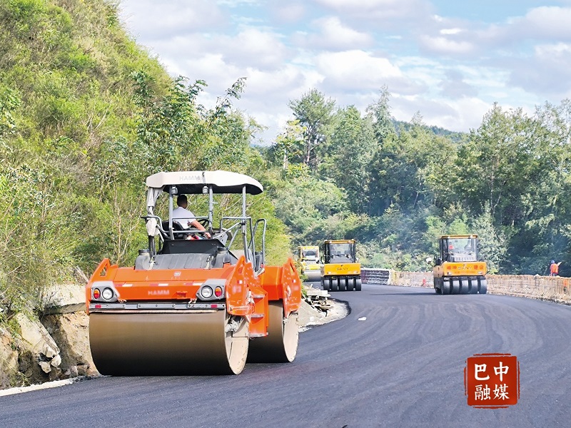 记者10月15日下午在米仓大道光雾和谷至四垭段看到,混凝土运输车、沥青运输车、洒水车、随车吊等各式车辆来回穿梭,摊铺机等大型设备有序铺筑路面,压路机来回碾压路面,工人们有的在绑扎路中隔离桩钢筋,有的在进行水沟模板安装,有的在进行水泥填充浇筑,有的在安装防撞护栏,有的在忙着施划道路标线,建设者们正加快进度冲刺项目工程收尾。