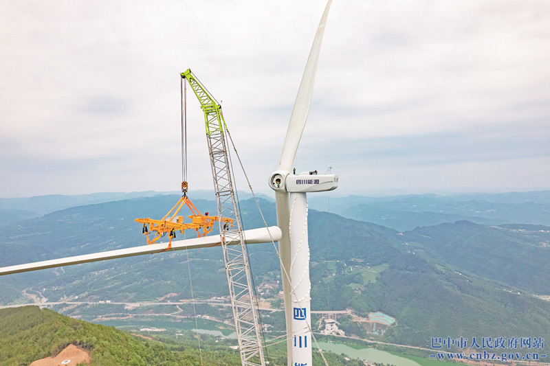 巴中通江兴隆风电项目完成首台风力发电机吊装