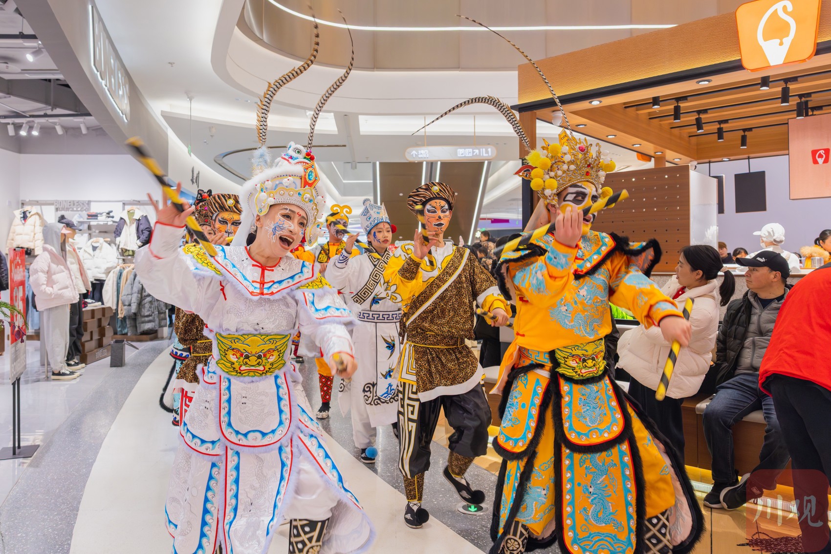 1月2日,国家级非遗英歌舞在绵阳市涪城区园艺街及周边商场巡游,把节日气氛拉满。