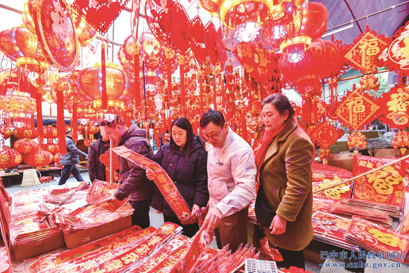 春节临近,年味愈发浓厚。在巴城,大街小巷张灯结彩,大红灯笼、特色灯组点缀街头,工作人员紧锣密鼓地装扮着这座城市;在乡镇集市和城区各大市场,各类商品琳琅满目,人们精心挑选过年好物,处处都是忙着买买买的热闹景象。流光溢彩的景致与购买好物的热闹相融,满是欢乐祥和、物阜民丰的气息。(巴中融媒记者 何雨隆)