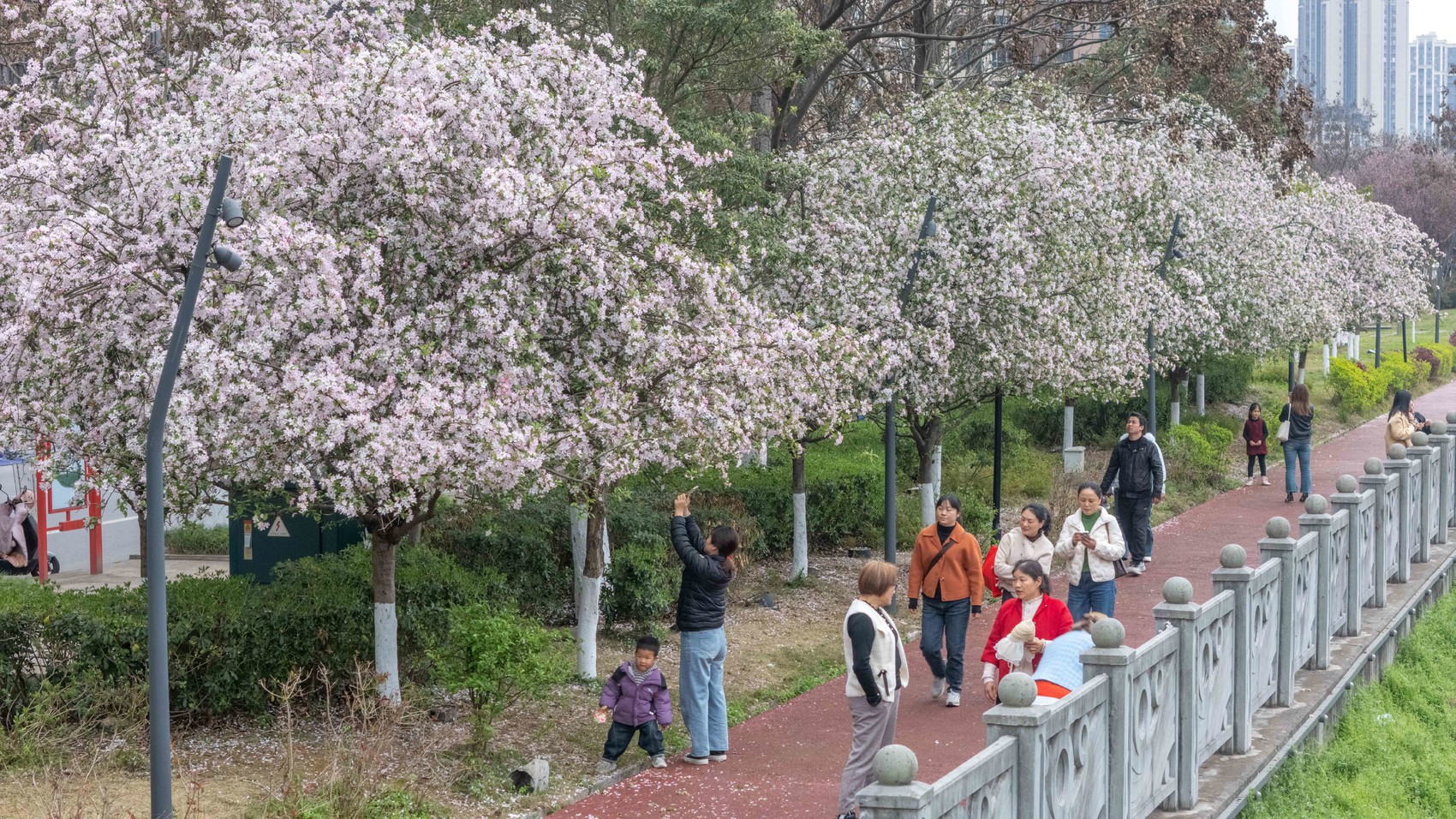 春风拂面,繁花竞开。巴城天下城附近滨河路沿线海棠花悄然盛开,粉艳的花朵缀满枝头,为城市增添了浓浓春意。不少市民前来观赏打卡拍照,漫步花间,尽享春日美好。