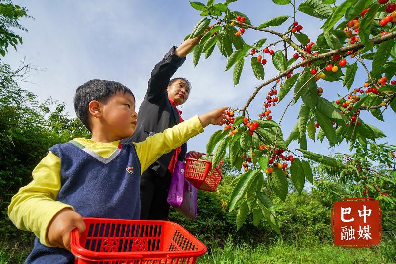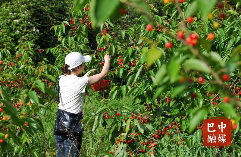 眼下正是樱桃成熟的季节。距离巴城几公里外的巴州区宕梁街道塔子山村三组的“幸福家园家庭农场”里,玛瑙红樱桃已挂满枝头,颗颗饱满红润,在绿叶的映衬下格外诱人,吸引了不少市民和游客前来采摘尝鲜。据了解,该农场目前已栽种樱桃、蟠桃、无花果、草莓等水果,总面积达70余亩。这片昔日的普通土地,如今变成了瓜果飘香的“致富园”,不仅为当地村民创造了家门口的就业岗位,也让农旅融合的路子越走越宽。