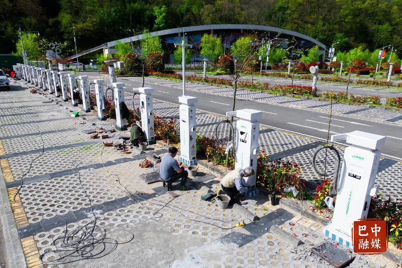 连日来,在巴中市文旅示范区光雾山旅游区米仓山景区铁炉坝游客中心停车场,施工人员正加紧开展充电桩安装与电器调试作业。