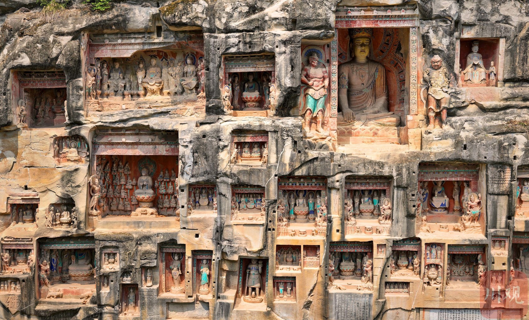 不同于云岗、龙门石窟得益于皇室“钞能力”的加持,这里的一锤一錾更多源于民间自发的虔诚。本地布衣、丝路客商、长安僧侣、谪迁官吏……数百年间,民间竟集“众筹”之力,在巴中凿刻出大大小小200多处石窟、1200余龛、14000余尊造像。