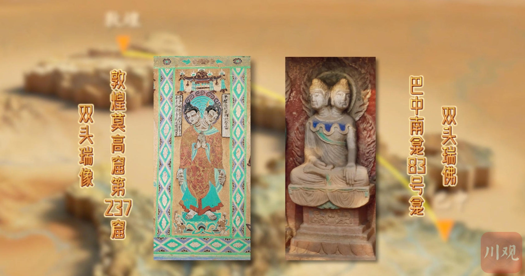 巴中南龛双头瑞像石刻与敦煌莫高窟彩绘版双头瑞像