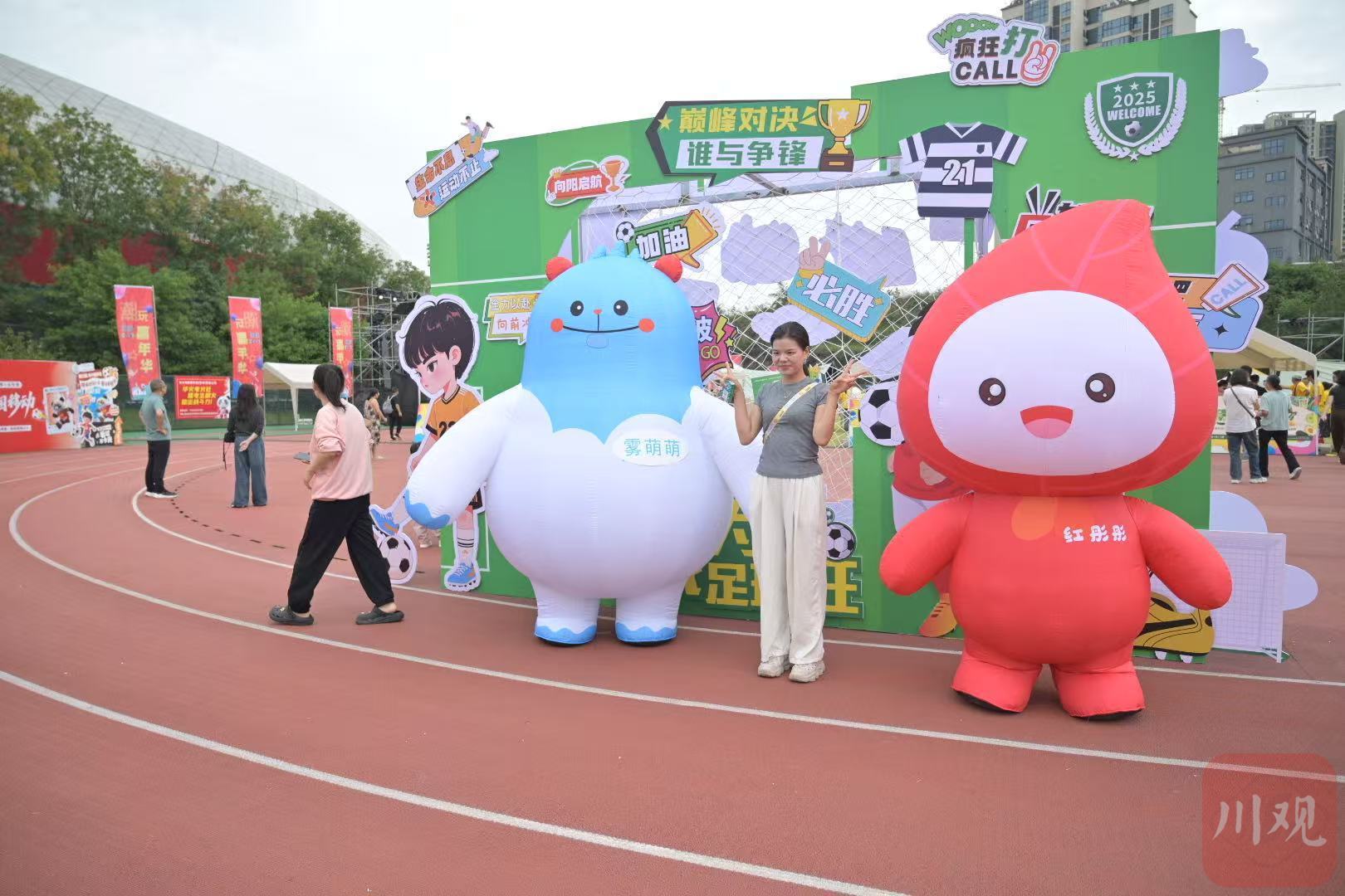 嘉年华内,游客们可通过电子大屏实时观看“川超”比赛,还能品尝特色美食。(谭小龙 摄)