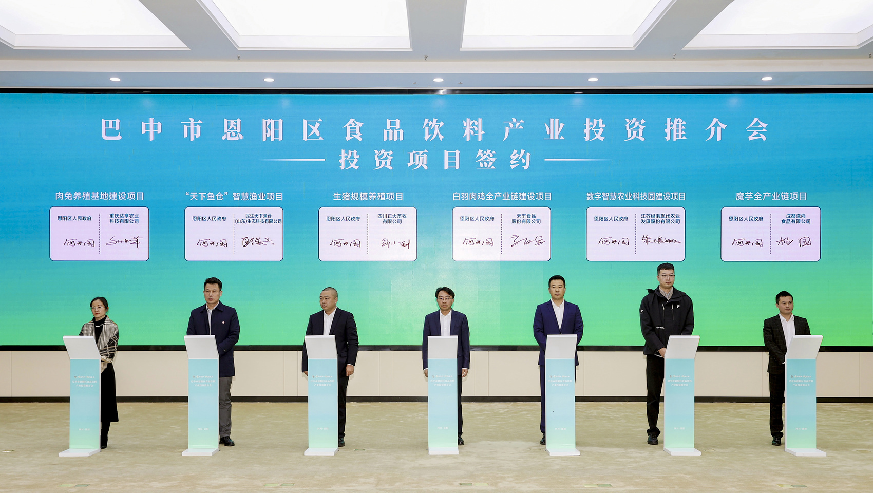 “恩阳优质的畜禽产品和绿色的果蔬农产品正是我们食品饮料产业的第一车间。”“恩阳保姆式的营商环境,让我们为项目落地充满信心。”“我们将在恩阳投资肉兔产业,建设肉兔养殖基地、初加工设施设备厂,打造全产业链。”……现场27家签约企业纷纷表示,十分看好恩阳的生态资源、产业基础、市场空间,表示将以此次签约为契机,加快落地转化、融入恩阳产业集群发展浪潮,实现互利共赢。
