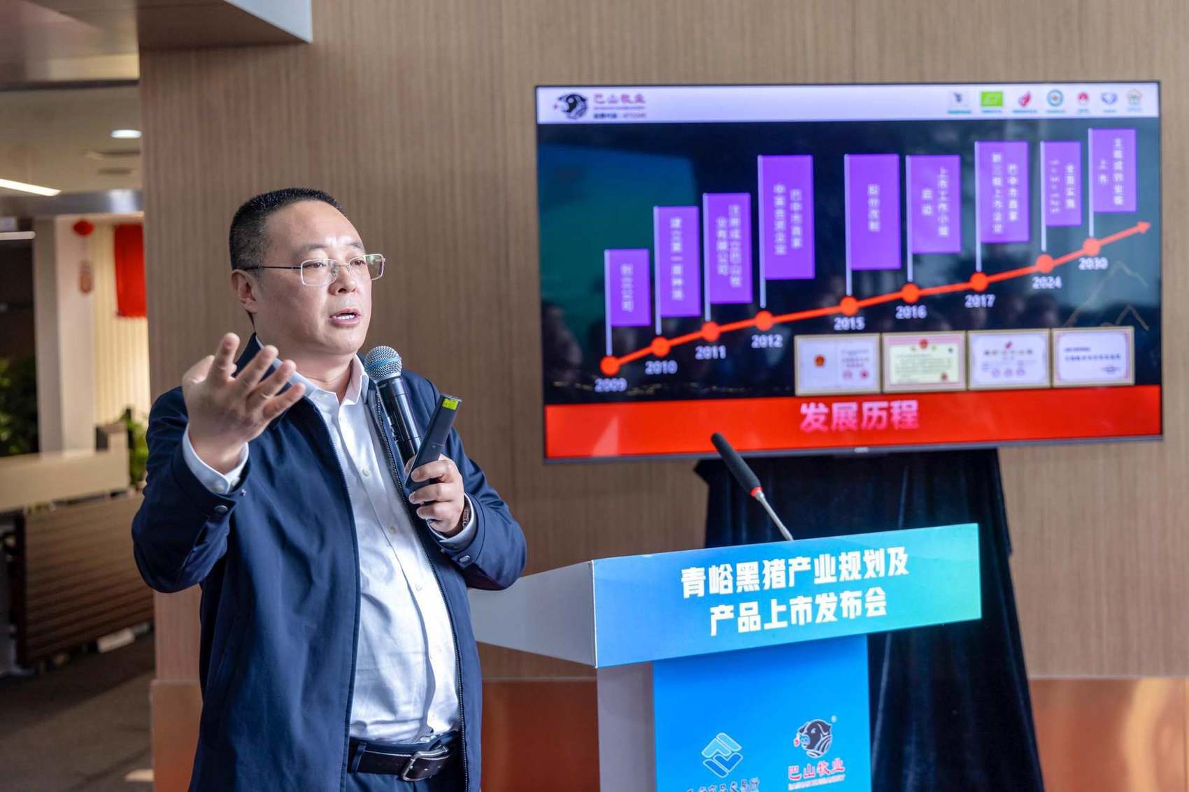 张育贤介绍青峪黑猪全产业链及2026年产能规划。