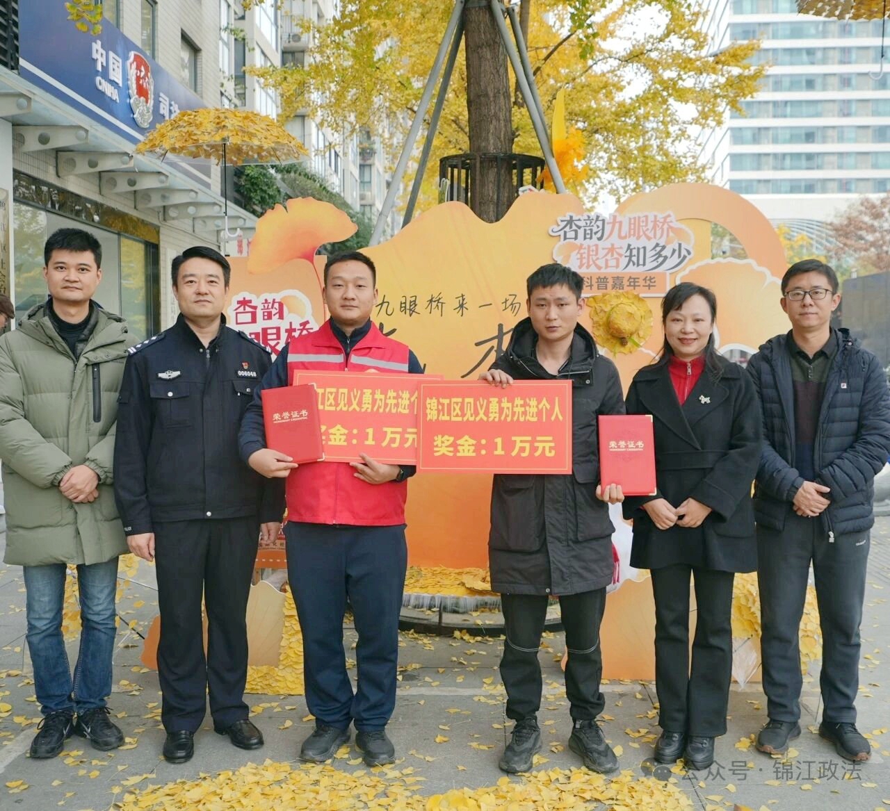 2025年12月10日,付超和张浩楠被评为“锦江区见义勇为先进个人”,分别获得1万元奖金。 成都市锦江区委政法委供图