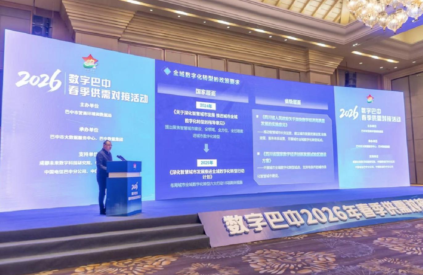 1月30日,由巴中市营商环境和数据局主办,市大数据服务中心、巴中数据集团承办的数字巴中2026年春季供需对接活动在巴中城区举办。