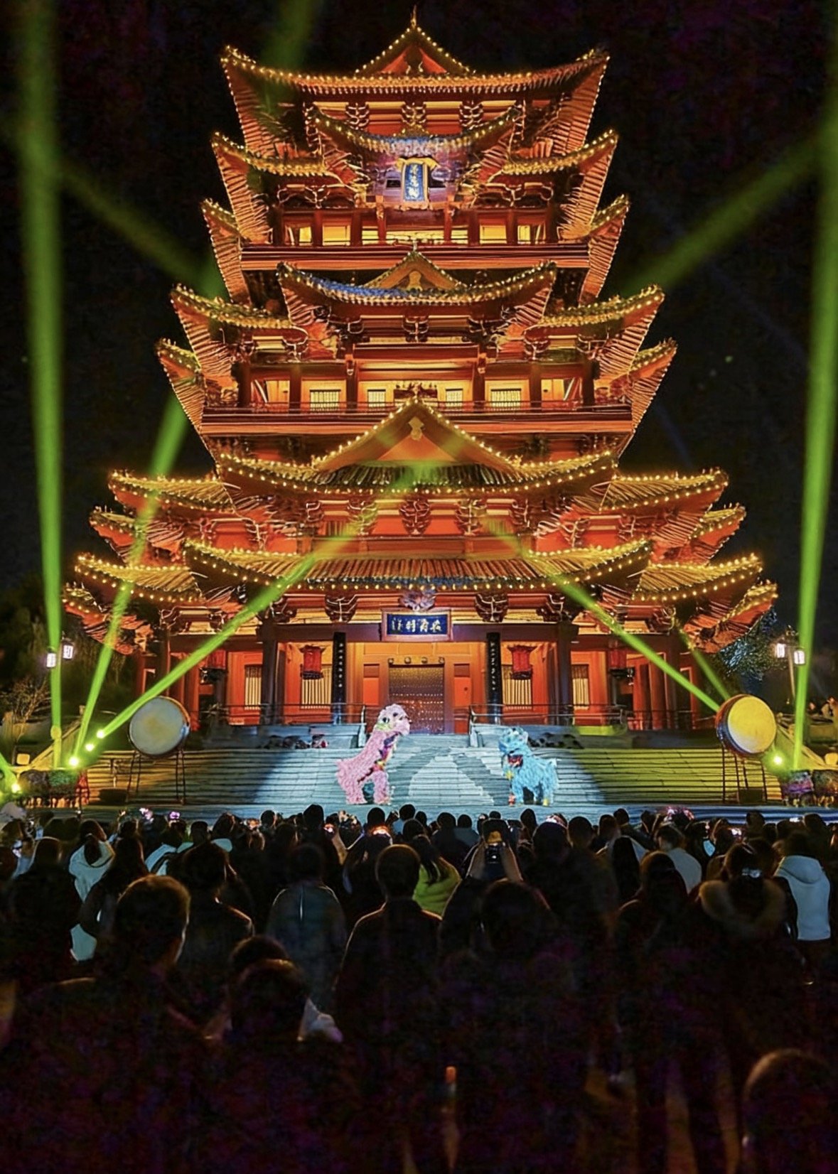 巴中年味浓,离不开丰富多彩的文旅活动。2月17日,大年初一夜,巴城南龛山公园飞霞阁灯火璀璨,集传统民俗与现代文艺于一体的文艺表演,为市民游客送上马年新春祝福;在恩阳科普大视界,“科技过年”解锁新玩法,全国最大16K沉浸式超高清球幕飞翔影院光影流转,游客们在新上映的《一秒一光年》影片里仰望浩瀚星空;在南江断渠,“羊BA”点燃新春激情……
