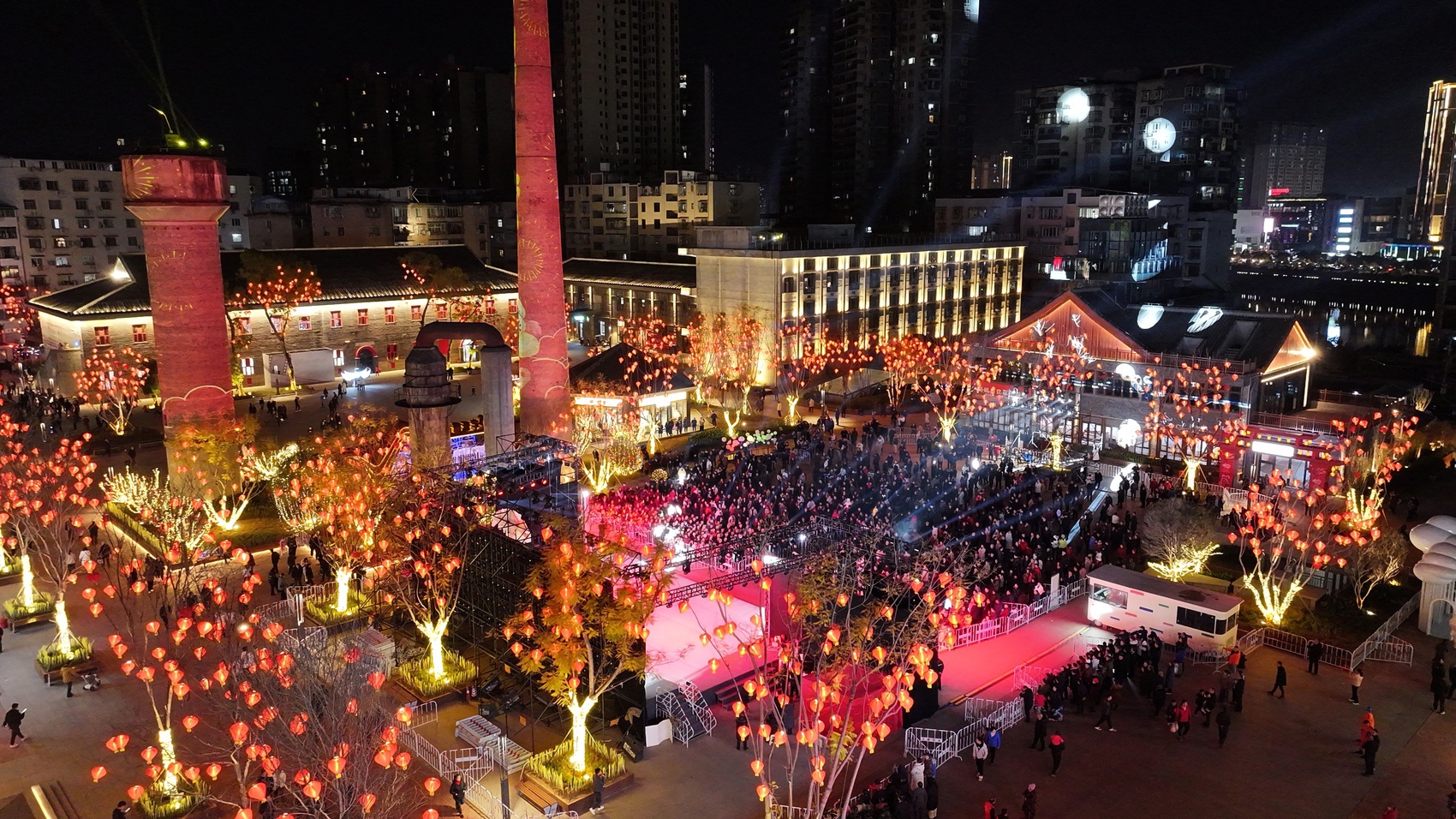 夜间的巴城记忆文创产业园,人潮涌动,流光溢彩。(巴州区委宣传部供图)